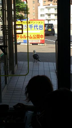 ホテルの玄関にカモメがΣ(゚□゚ )