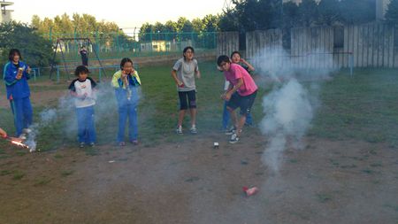 みんなここまで頑張ったということで、夕練が終わった後に隣の公園で花火をしました。