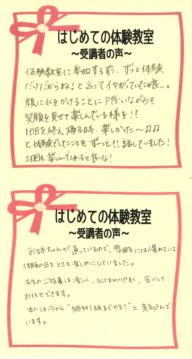 8月1日(水)・2日(木) 夏期はじめての体験教室・5期目 には