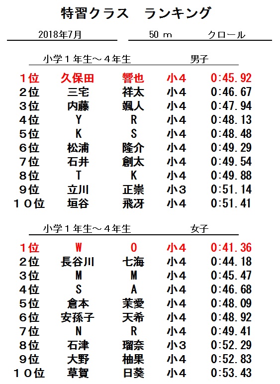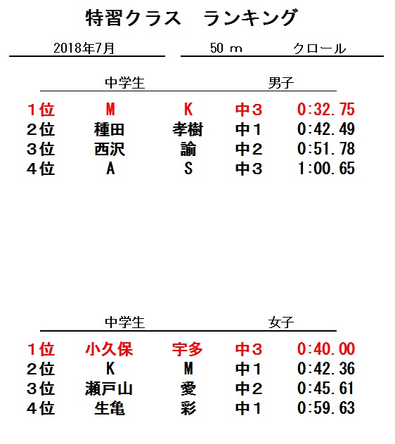 特習クラス 7月度ランキング!!