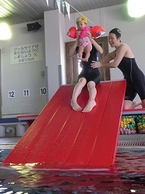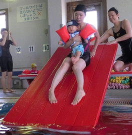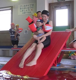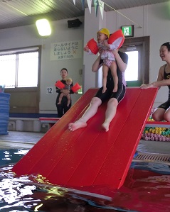 プールの滑り台はスピード出るでぇ(#^Д^#)