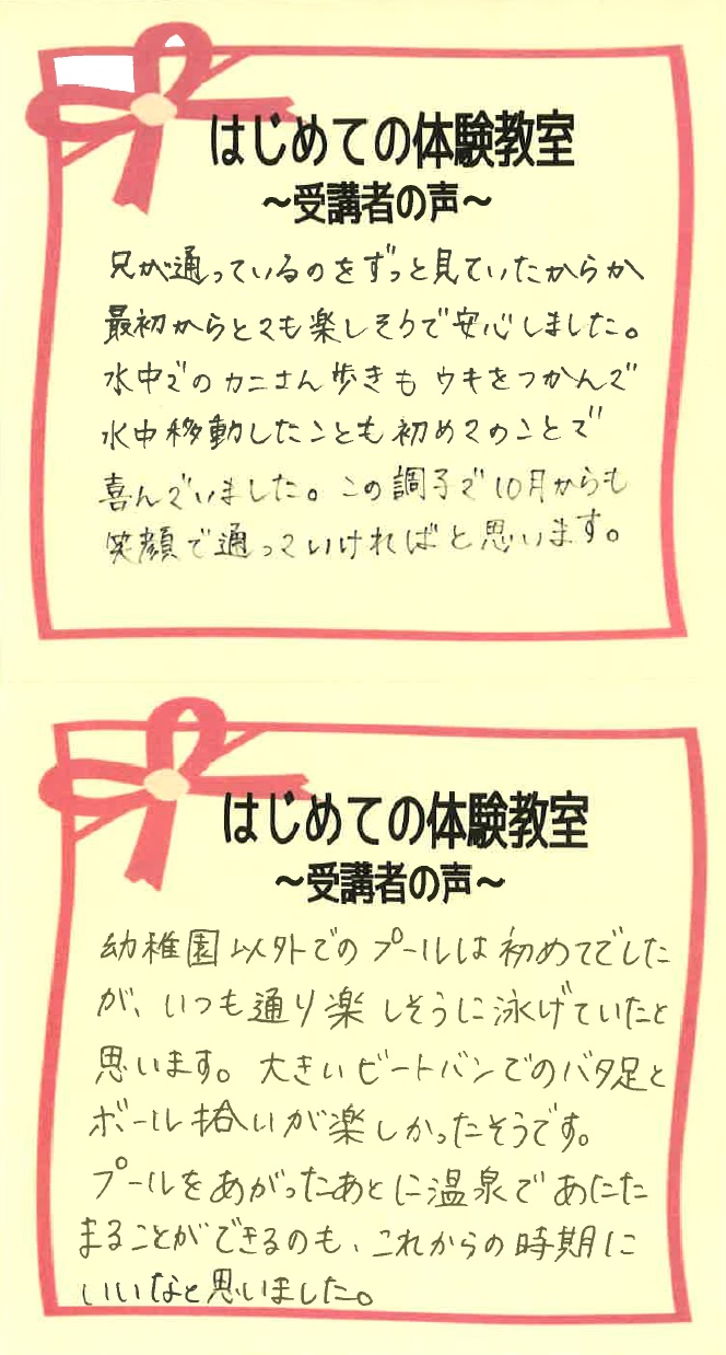 9月1日(土)・2日(日) 夏期はじめての体験教室・11期目 には