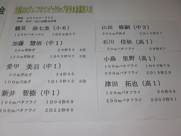 最後にJOC夏季大会の結果です。