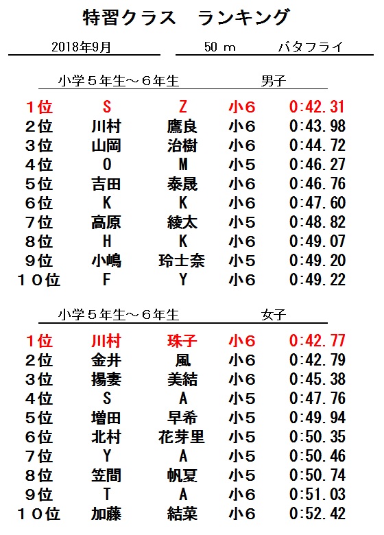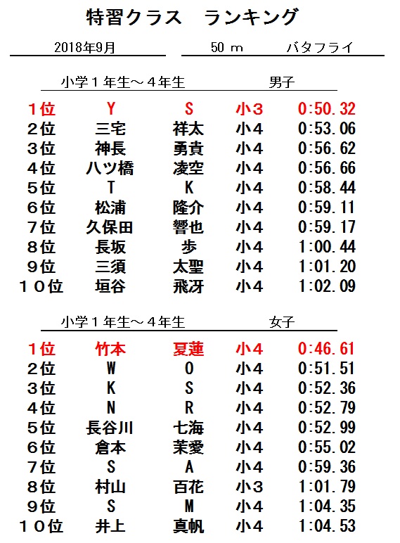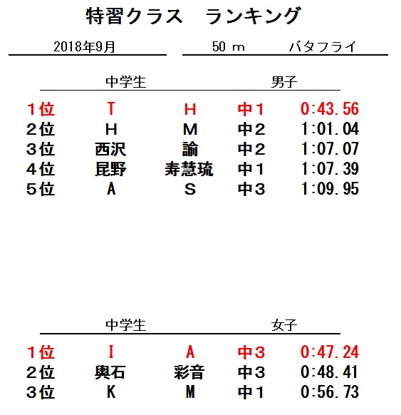 特習クラス9月度ランキング!!