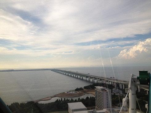 1番高いところから見た関空連絡橋。天気が良ければ神戸方面も見えるそうです。