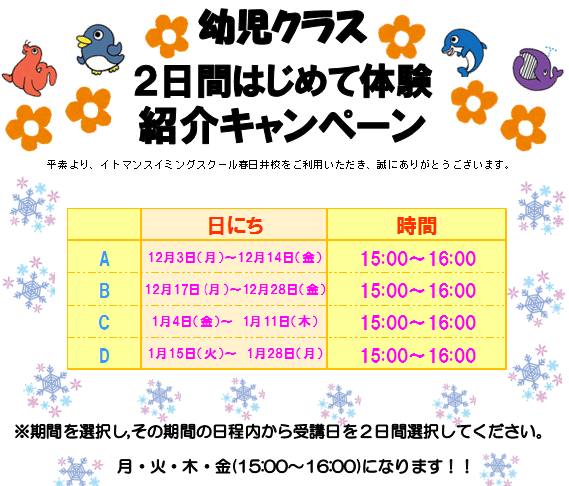 幼児クラス☆2日間はじめて体験☆紹介キャンペーン☆