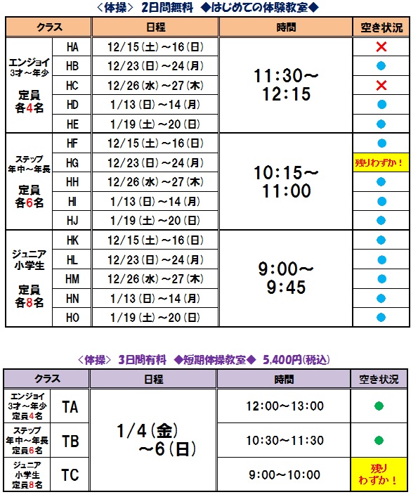 *以前体験をしたことがある方、現在体操教室会員の方は『短期教室』へ!