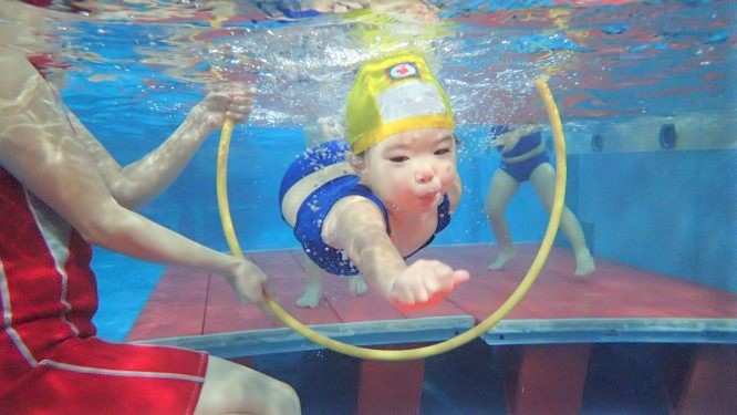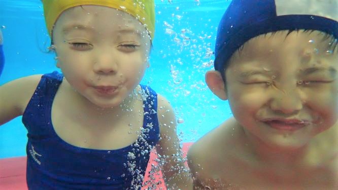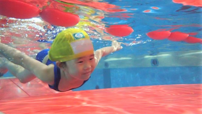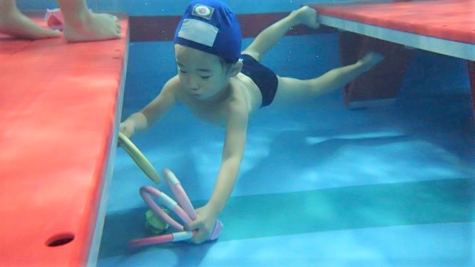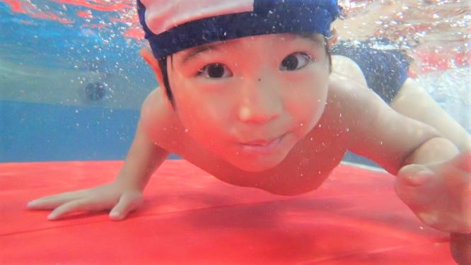 みんながみんな最初から潜れたわけではなく、シャワーが苦手だったり顔が濡れるのが嫌だったお子様もいました。でもお友達が楽しそうに遊んでいる姿に影響を受けたり、恐怖心が無くなり、「やってみようかな?」という気持ちがでてくることでこんなにも楽しく水中で遊ぶことができるようになりました。