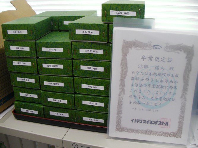まず卒業式に参加する生徒さんの楯と認定書を準備します