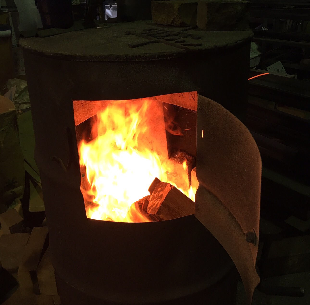 暖房は友人手作りのストーブのみですごく寒いのですが、薪が燃える音と炎の明かりが心地よかったです。