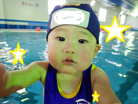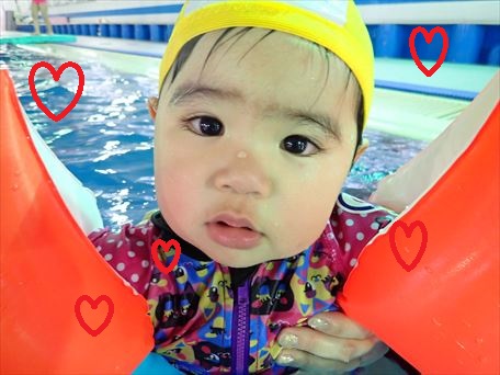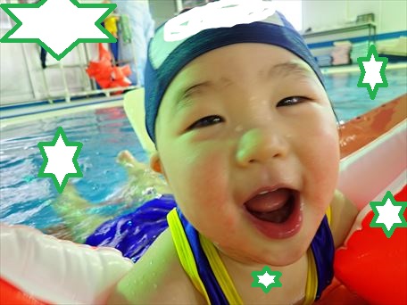 どんどんプールに慣れてきて、笑顔もみれて、とてもうれしいです)^o^(