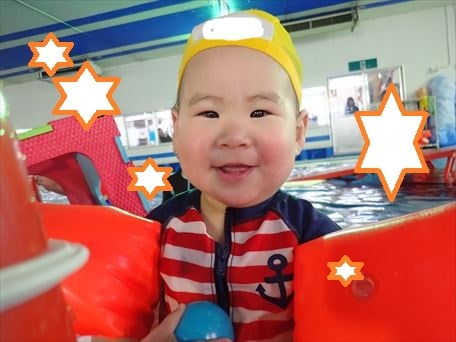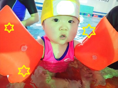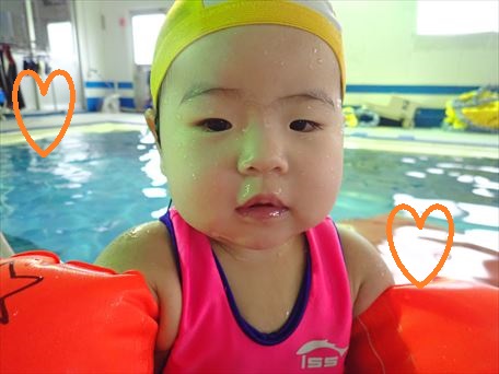 プールに慣れてきて、笑顔もでてきて、とてもうれしいです!
