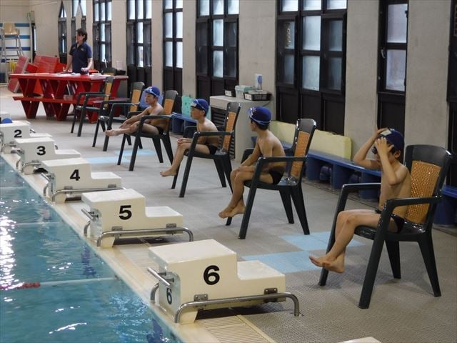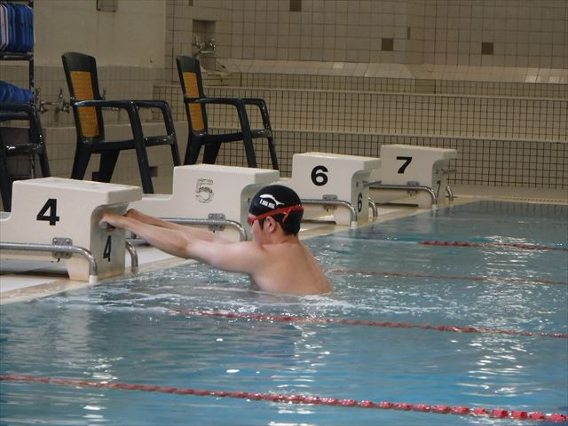 記録会スタート前に黒川コーチによる模範泳法を行いました!