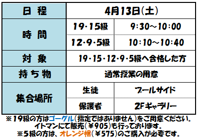 さて、4月13日(土)に行われる泳法別オリエンテーションですが