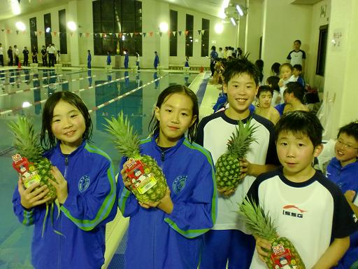 総合の順位は3位でしたが、小学3・4年生のリレーでは0.01秒差で見事優勝し、リレーメンバーには表彰式で優勝商品のパイナップルが贈られました!!