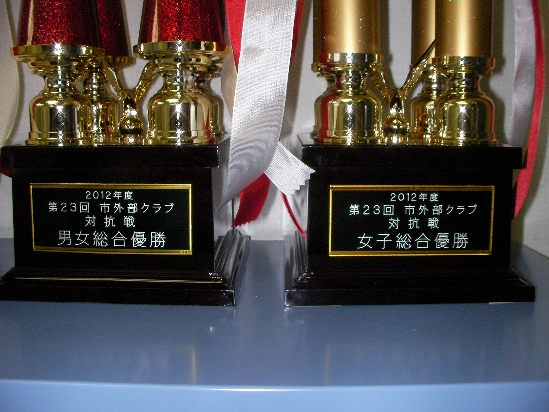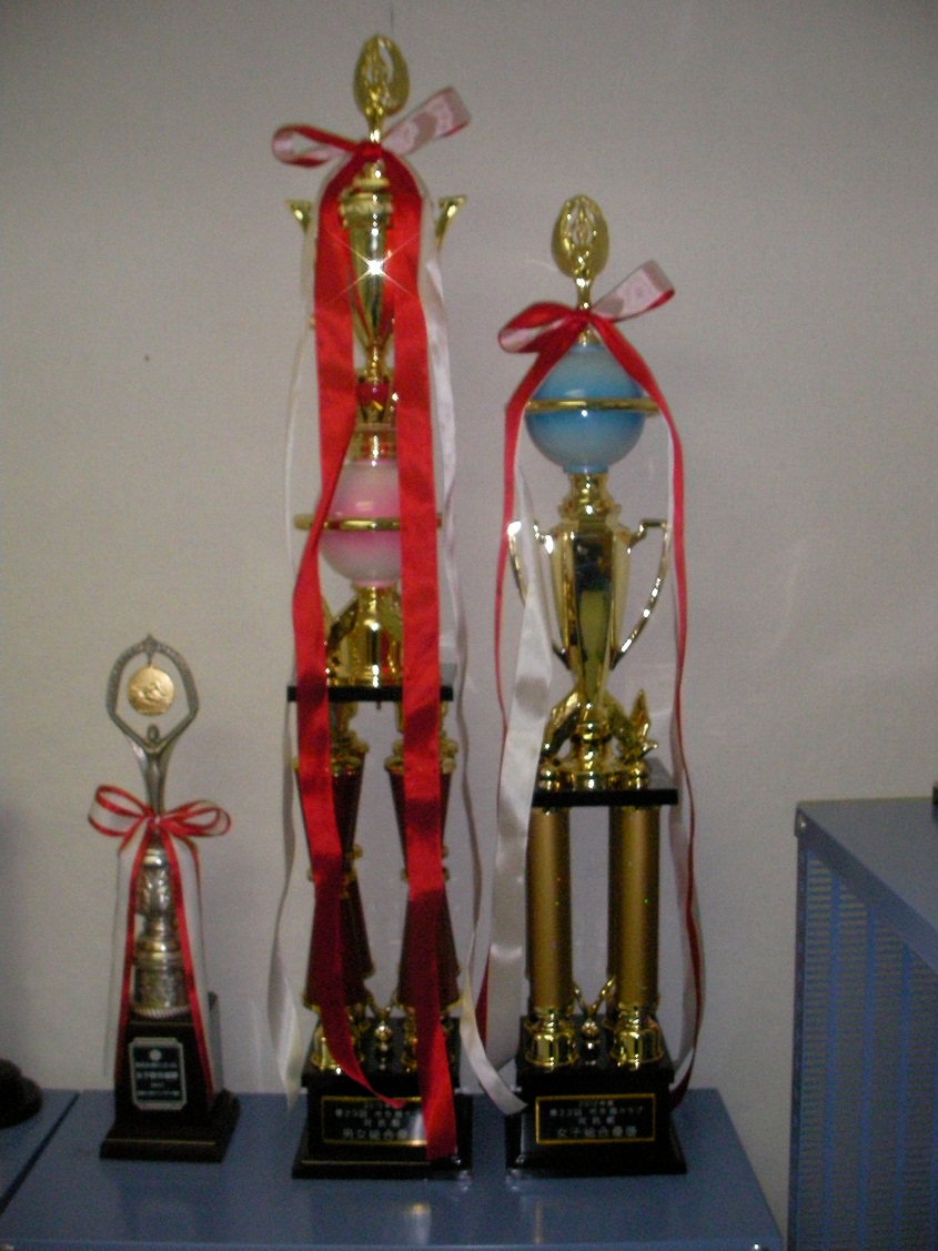 この大会の女子総合と男女総合で優勝したトロフィー!