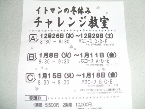 2012年冬のチャレンジ教室の期間は何期間あるでしょうか
