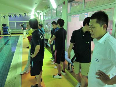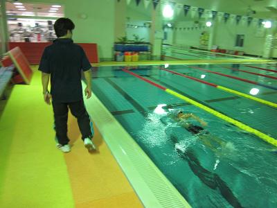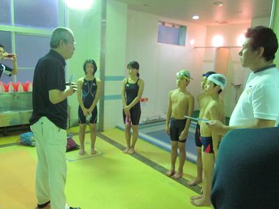 コーチ陣は普段と違う視点で選手の泳法指導を