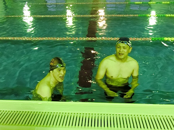 林コーチの横いる、山中コーチは餅月&林コーチを2秒も離して、大勝利!!