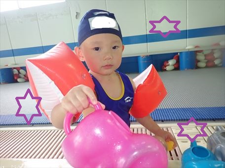 水中を自由自在に泳いでいます!ヘルパーなしでとても上手ですね!