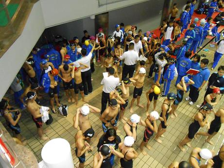 50m種目の招集所の様子。またまた賀茂先生発見。何処でしょう?