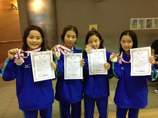 2日目の高校女子400フリーリレーメンバー。