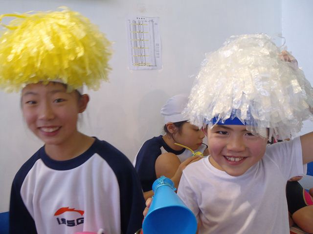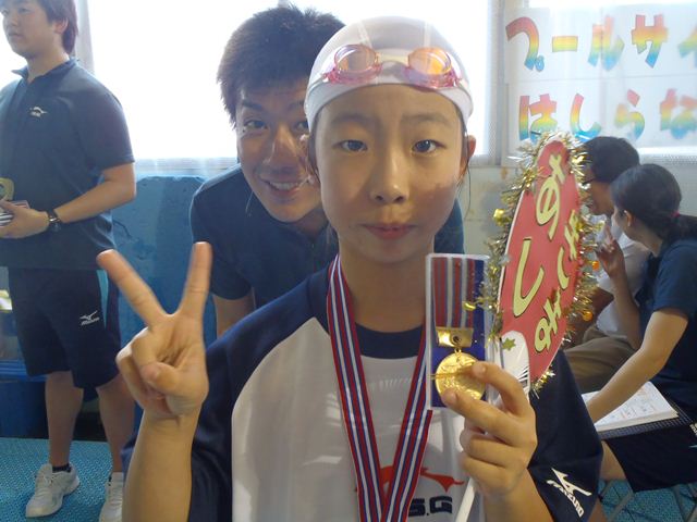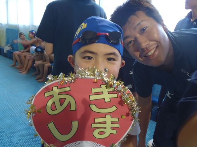 大会新記録が出た時には・・・そう!計時のコーチが手を挙げるんですよ。