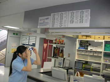 フロント前で当選者一覧表をゴーグルで覗き込んでいました( 一一)