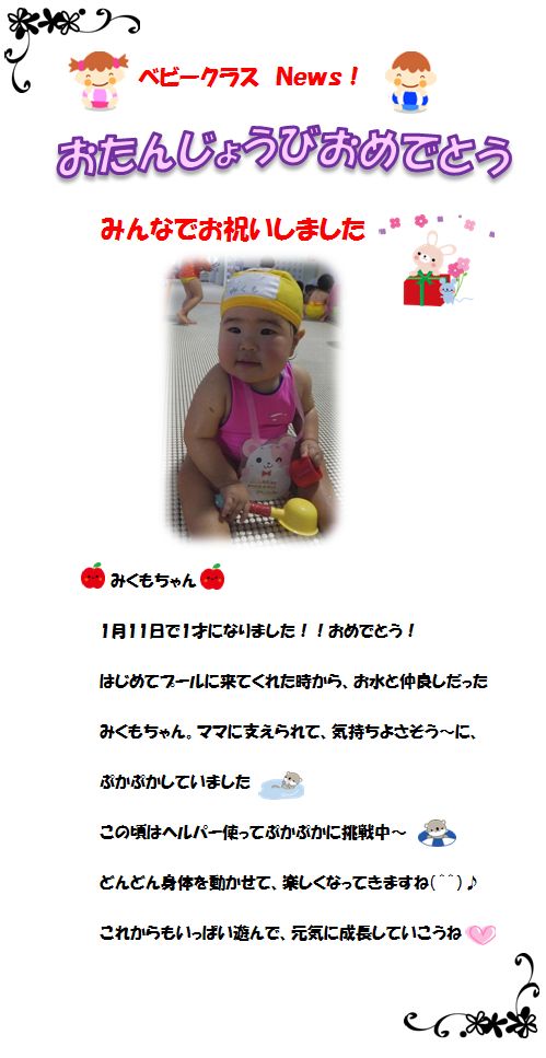 ♪ベビークラス News♪ お誕生日お祝いしました!!‘1月11日’