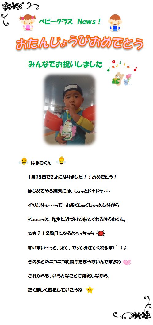 ♪ベビークラス News♪ お誕生日お祝いしました!!‘1月15日’