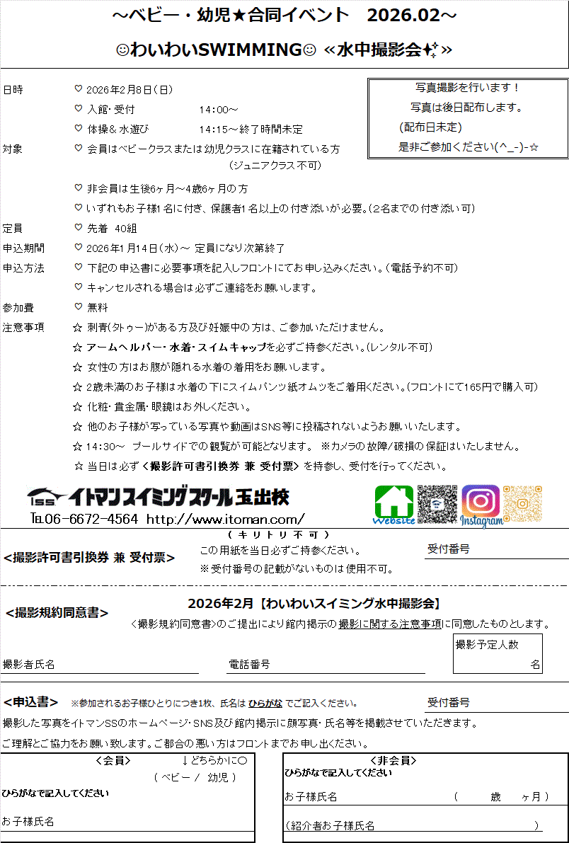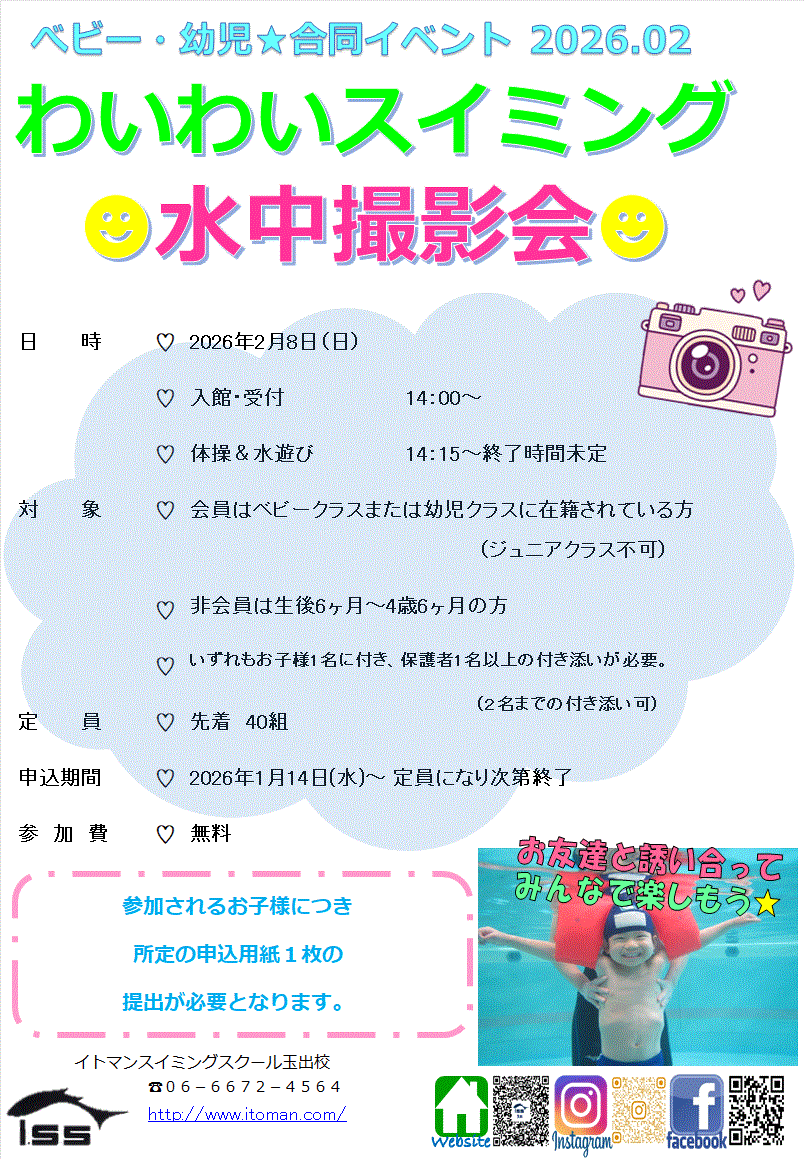 2月8日(日)わいわいスイミングを行います!