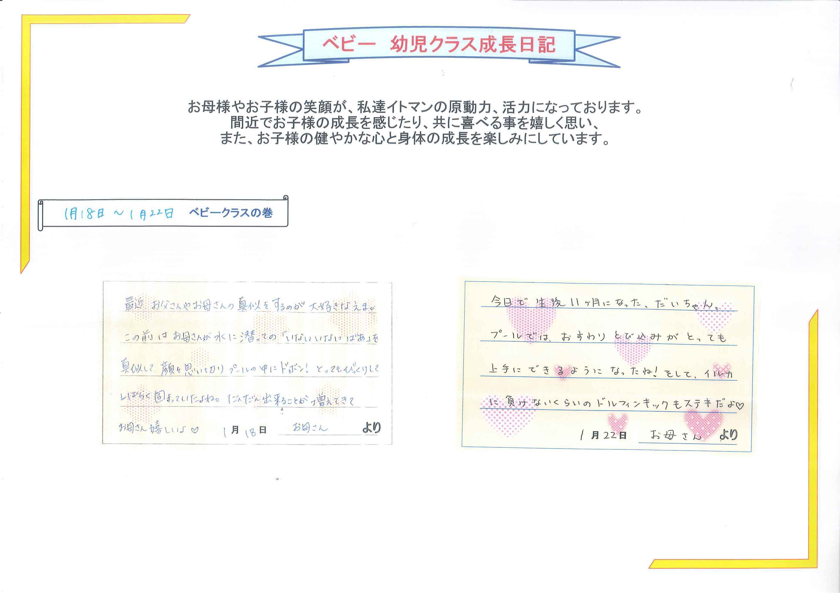 だいちゃんが上手に出来るようになったのはだいちゃんママの補助の腕が上がった証でもありますこれからも親子で楽しくプールでチャレンジしていきましょうfrom さとう