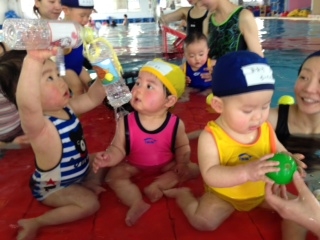 さて、今日も元気なベビーちゃんたちがプールにきてくれましたよ