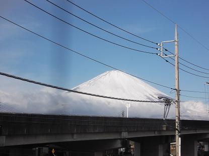今日は、裾野は雲が多めですが山頂付近は白く雪に覆われた富士山がはっきりと見えます。