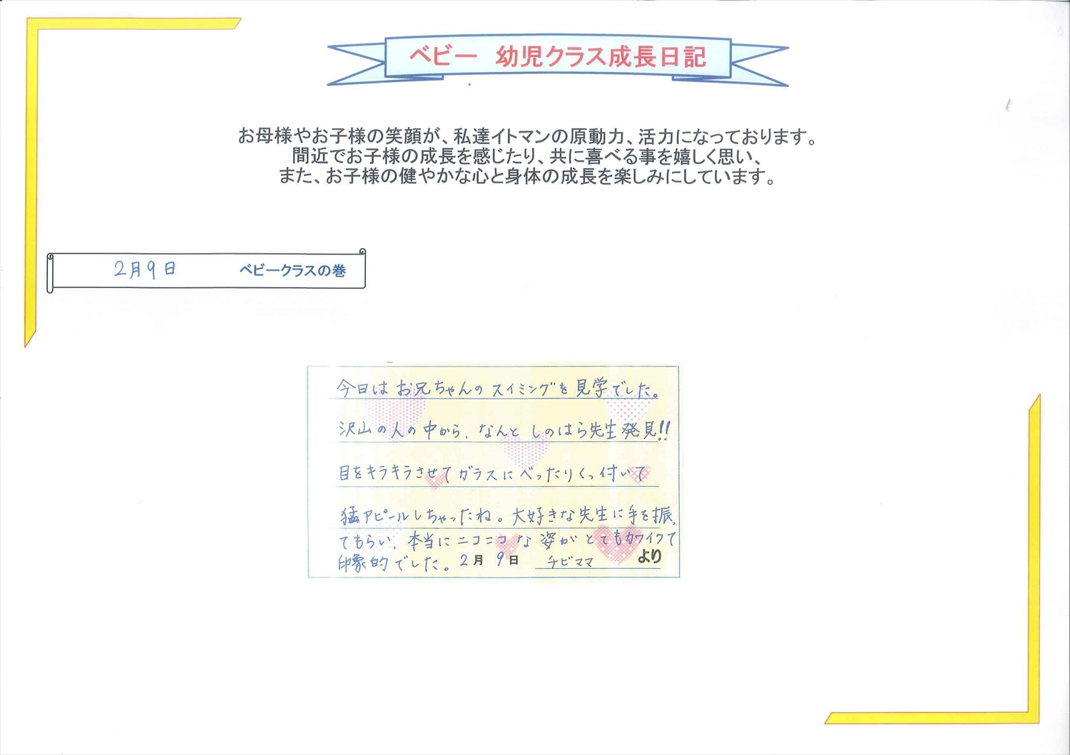 先生が日記に登場ヤッターお兄ちゃん、かっこよく泳げてたかなママとヨーボーを見つけて手を振ったらニコニコ笑顔を見せてくれてとても嬉しかったよまたその笑顔を見せてねfrom しのはら