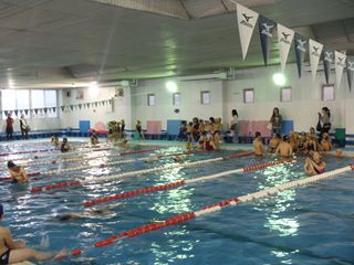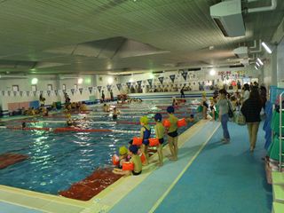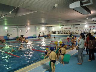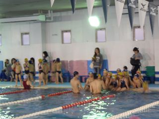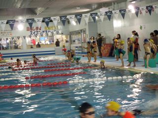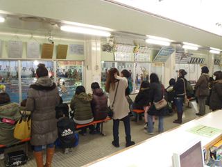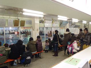 プールサイドで授業の様子を見てもらう事が出来ます。