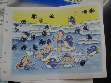 2、ペンギン・アシカ・イルカ・クジラの4つのスタンプの中から1つ選んで押す