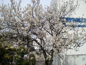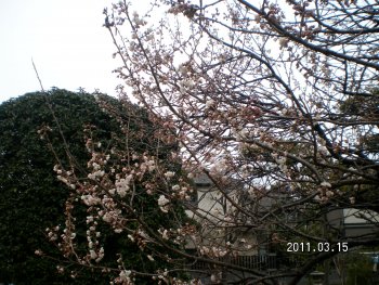 プールの近くにある桜のつぼみがいつの間にか開いていました。