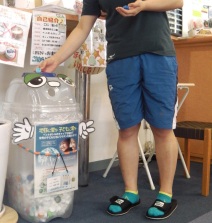 さっそくエコピンのお腹には、腹五分目くらいのペットボトルキャップがつまっています!!