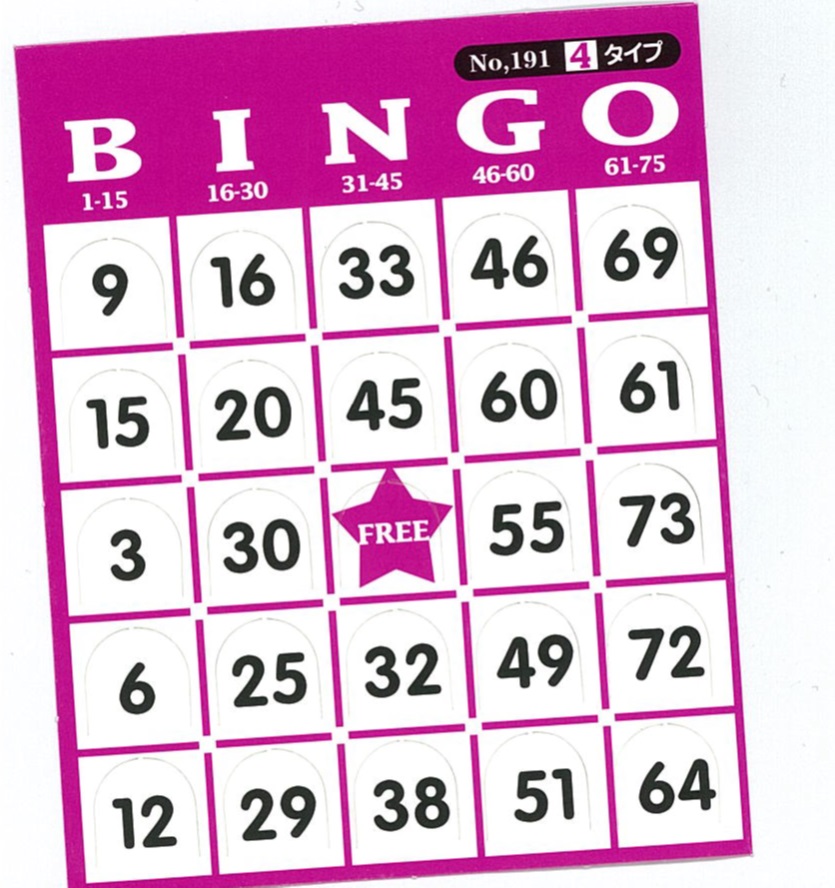 ビンゴカードの一番左の列は1-15 左から2列目は16-30 中央列は31-45