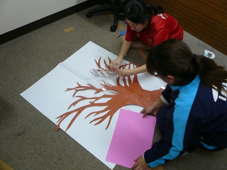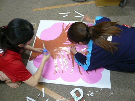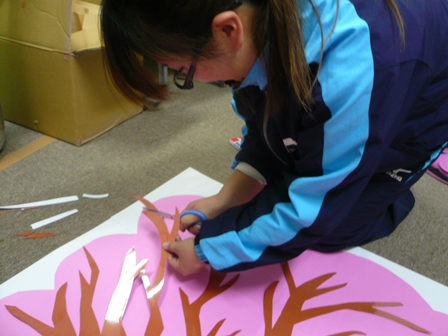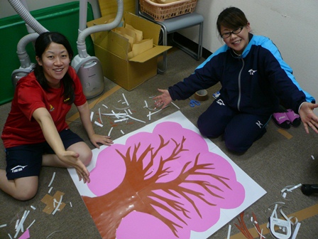 大野さんも手伝って、2人できれいなサクラの木を作っていきます。