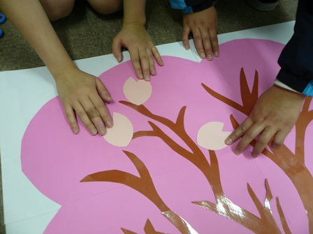 サクラの花びらを、たーくさん貼ってサクラを満開にします!!