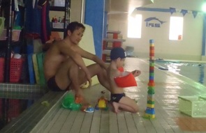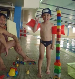 最初はプールでパパといっぱい身体を動かし、後半は疲れてきたのか、おもちゃに夢中!
