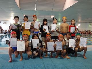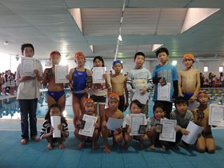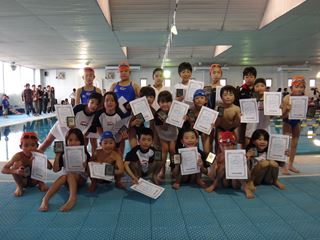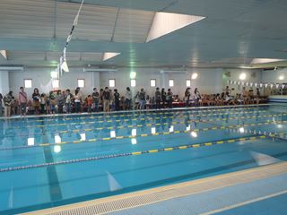 プールサイドを囲む様に保護者の皆さんにも授与式の様子を見て頂きました。
