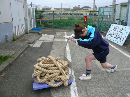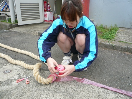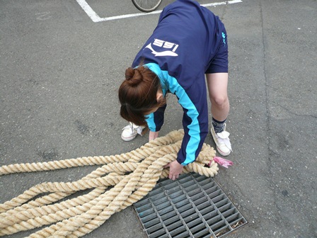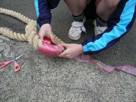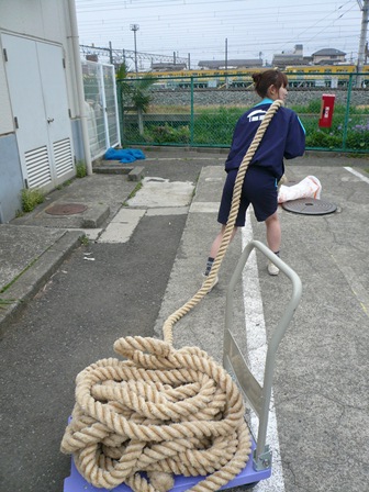 水上運動会に向けて、綱引きの縄を準備しました。