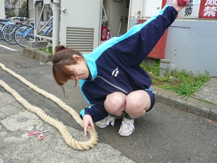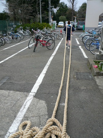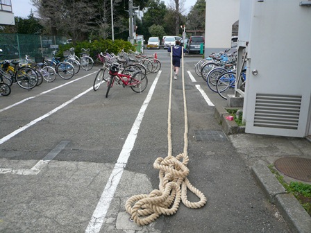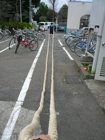 2人で運んでも、すっごい重たい縄でした。