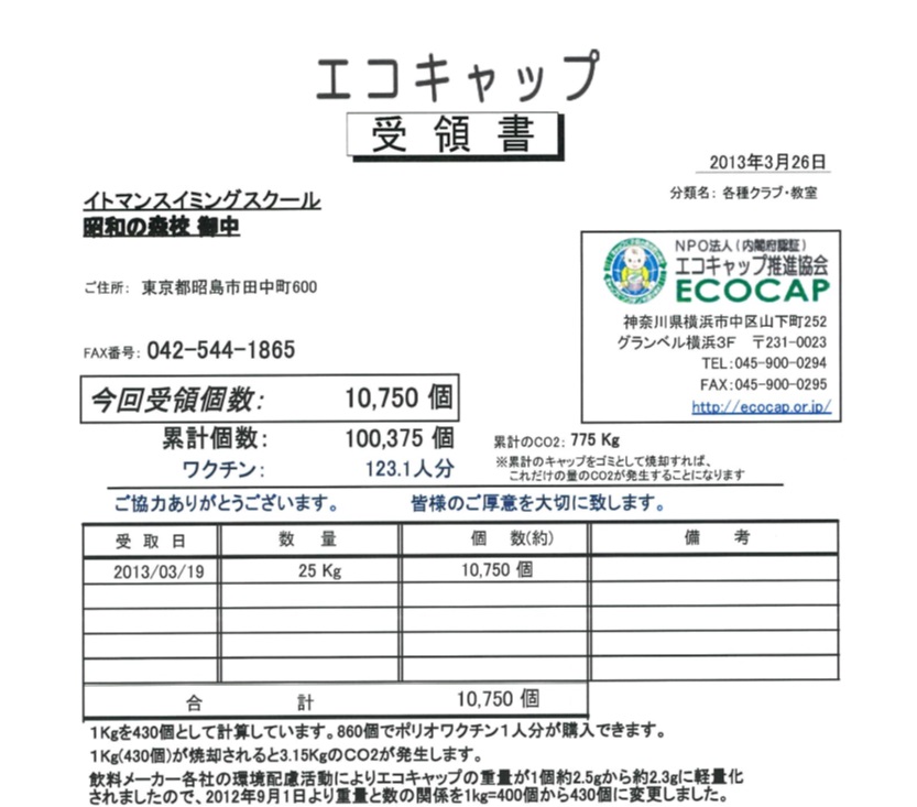 少し小さいのですが、数量だけでも実際の受領書をご覧頂きたくて・・・