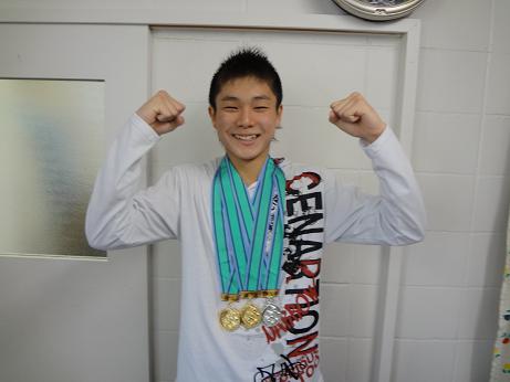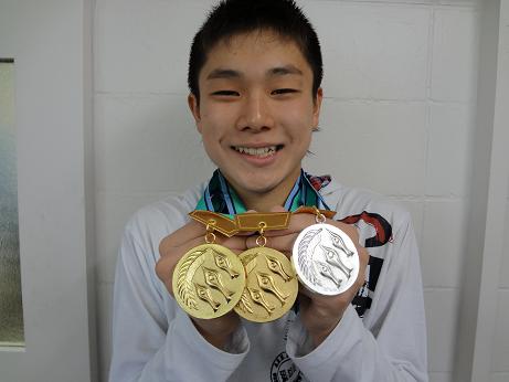 先日、岡嶋君がジュニアオリンピックのメダルを持ってきてくれました!!