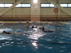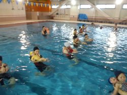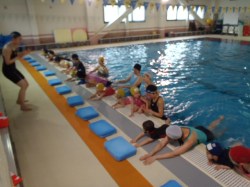 背泳ぎに挑戦です。ママ達とても上手でした。