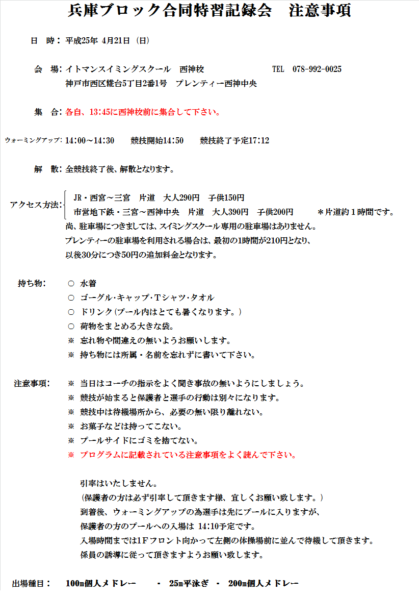 当日の集合時間等は、参加者全員に授業中に配布しております。